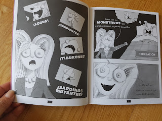 La historia es sencilla, no tiene palabras ni expresiones especialmente complicadas. No hay demasiadas frases por página y se utilizan diferentes grafías, negrita, mayúsculas... para hacer la lectura más amena y entretenida.